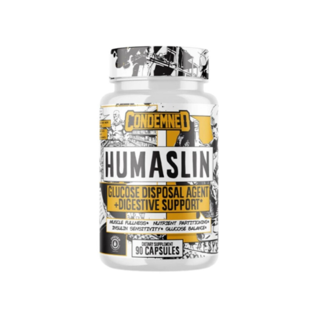 HumaSlin is a supplement by Condemned Labz that helps athletes maximize their anabolic window, accelerate recovery, and limit fat gain. It comes in 60 capsule bottles.