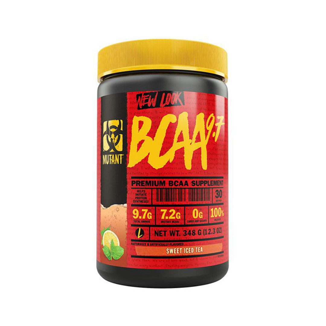 Mutant BCAA 9.7 is a dietary supplement that provides high-quality Branched Chain Amino Acids (BCAAs) in a sweet iced tea flavor. It is designed to help reduce muscle damage, boost recovery, and support peak performance during intense training sessions.