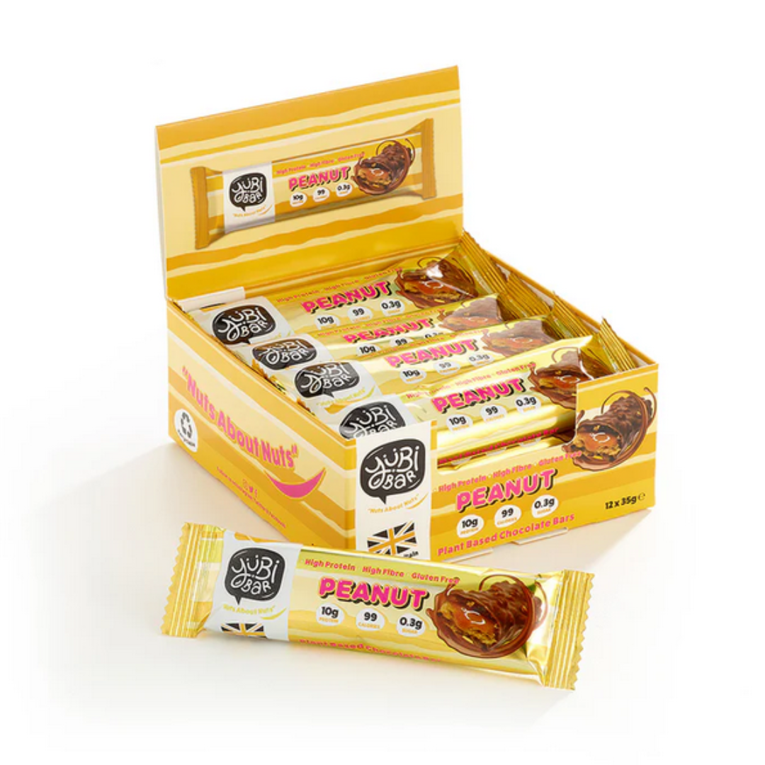 Are you a fan of nuts? Then you’re in for a treat with our Peanut protein bars! Packed with a tasty caramel layer, our special soya protein crispies, and creamy vegan chocolate. A flavour explosion for your taste buds!