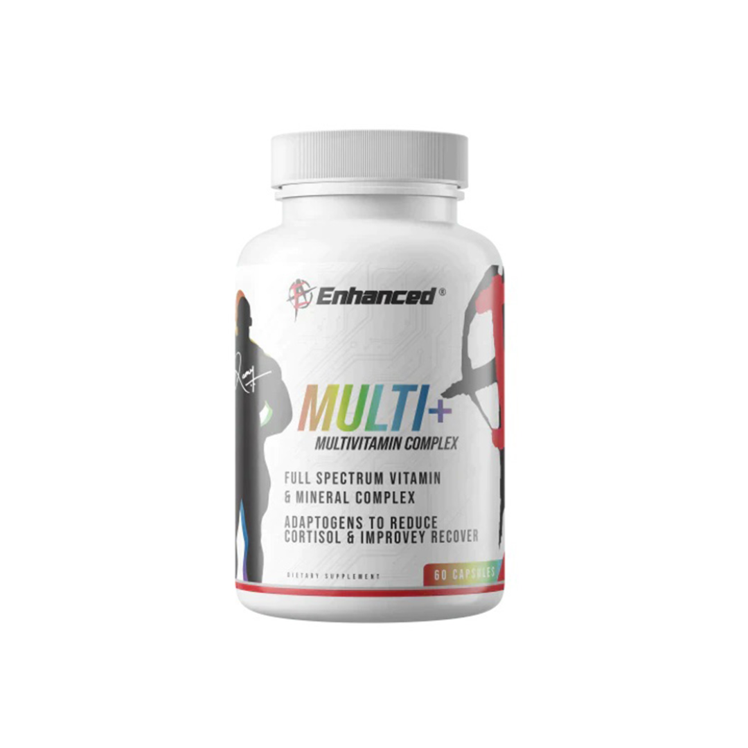 Enhanced Multi+ is a tailored multivitamin supplement designed for athletes, providing essential vitamins, minerals, and adaptogens to support energy, muscle function, and overall well-being, optimizing athletic performance.
