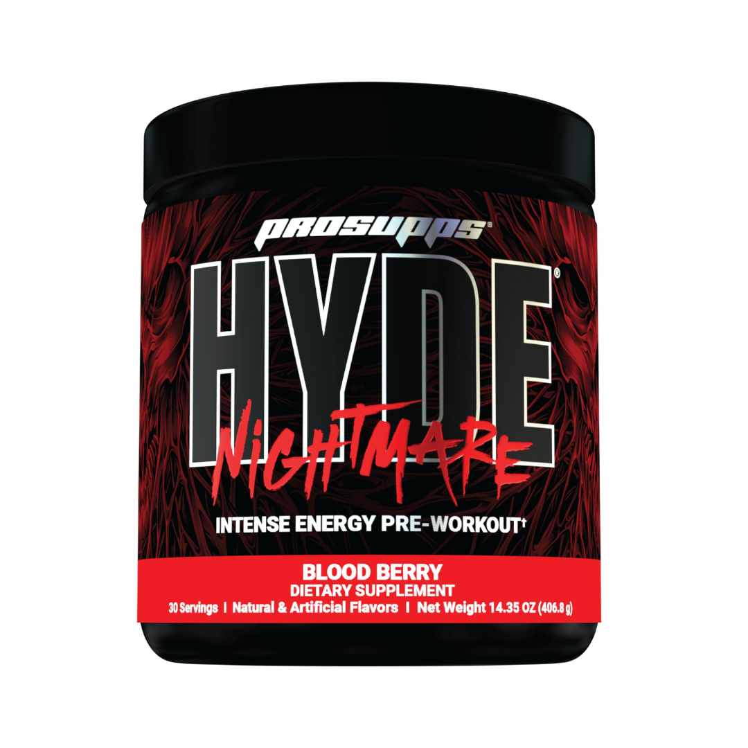 HYDE Nightmare V2 is a pre-workout supplement by ProSupps that contains a blend of ingredients to improve physical and mental performance. The key ingredients include beta-alanine to enhance endurance, Himalayan rock salt to replenish electrolytes, L-citrulline to increase nitric oxide levels, and alpha GPC to improve focus and power output. The product is available in various flavors, including Blood Berry. It is primarily formulated for high-performance athletes and combat sports competitors, but can benefit athletes of various disciplines