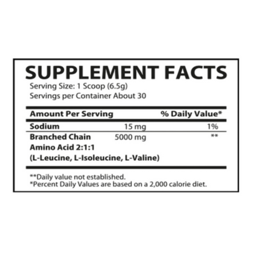 Muscle Rulz BCAA Fruit Punch – 30 Servings Muscle Rulz BCAA Supplement helps you preserve the lean muscle you’ve been working hard to build, train harder, and recover quicker. BCAAs also play a crucial role in overall protein turnover, which is to mention they assist regulate whether the body is during a recovery (tissue building) or catabolic (tissue breakdown) state. Muscle Growth Immunity Recovery Muscle Rulz BCAA Supplement helps you preserve the lean muscle you’ve been working hard to build, train harder, and recover quicker. Branched-chain amino acid (BCAA) supplements are popular among athletics and fitness fanatics because of their ability to increase muscle mass and enhance performance and endurance. BCAAs also play a crucial role in overall protein turnover, which is to mention they assist regulate whether the body is during a recovery (tissue building) or catabolic (tissue breakdown) state. Every serving of Muscle Rulz BCAA powder is supercharged with 5000 mg Branched-chain amino acid (BCAA). BCAA aids recovery, muscle building, and mental focus in seriously impressive ways. To create this BCAA blend, we optimized the latest technology in sports nutrition to ensure efficient nutrient transport to your muscles. Delay Fatigue During Prolonged Exercise Improve Aerobically and Anaerobic Performance Fortify the Immune System Protect Lean Muscle Promote Muscle Protein Synthesis Reduce Exercise-Induced Muscle Soreness and Damage Ingredients: Sodium, Branched Chain Amino Acid 2:1:1 (L-Leucine, L-Isoleucine, L-valine). Other Ingredients: Citric Acid, Malic Acid, Natural Flavour, Sucralose, Silicon Dioxide, Acesulfame Potassium, Salt, Sunflower Lecithin, FD&C Blue No. 1. Directions Of Use: As a dietary supplement, use one scoop in 10-8oz. of water. Shake well and consume during exercise on training days, or throughout the day on non-training days. Caution: Not for use by those under the age of 18. Keep out of reach of children. Do not use this product if you are pregnant or nursing. Consult a medical doctor before starting any diet or exercise program or if you have any known or suspected medical condition(s), and/or if you are taking any prescription or medication(s). Allergen Warning: Made in a facility that also processes sesame, egg, peanuts, tree nuts, fish/crustaceans/shellfish oils, and wheat products.