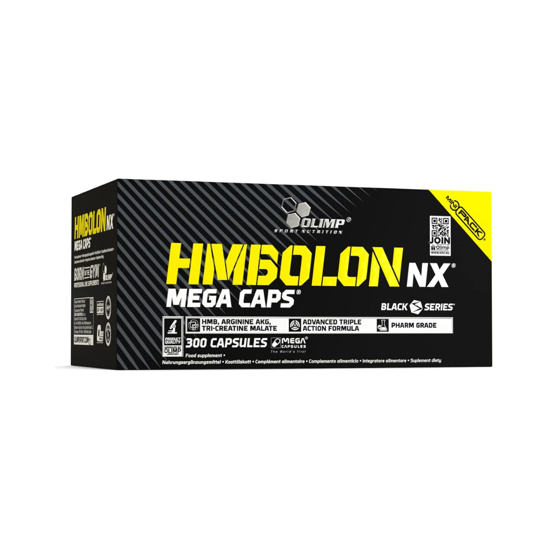Olimp HMBolon NX Mega Caps are a dietary supplement that contains a combination of calcium beta-hydroxy-beta-methylbutyrate (HMB), arginine alpha-ketoglutarate (AAKG), and tri-creatine malate. The product is claimed to facilitate the growth of strength and lean muscle mass, inhibit the activity of catabolic enzymes that destroy muscle proteins, and influence the production of anabolic hormones. The supplement is available in 300-capsule containers.