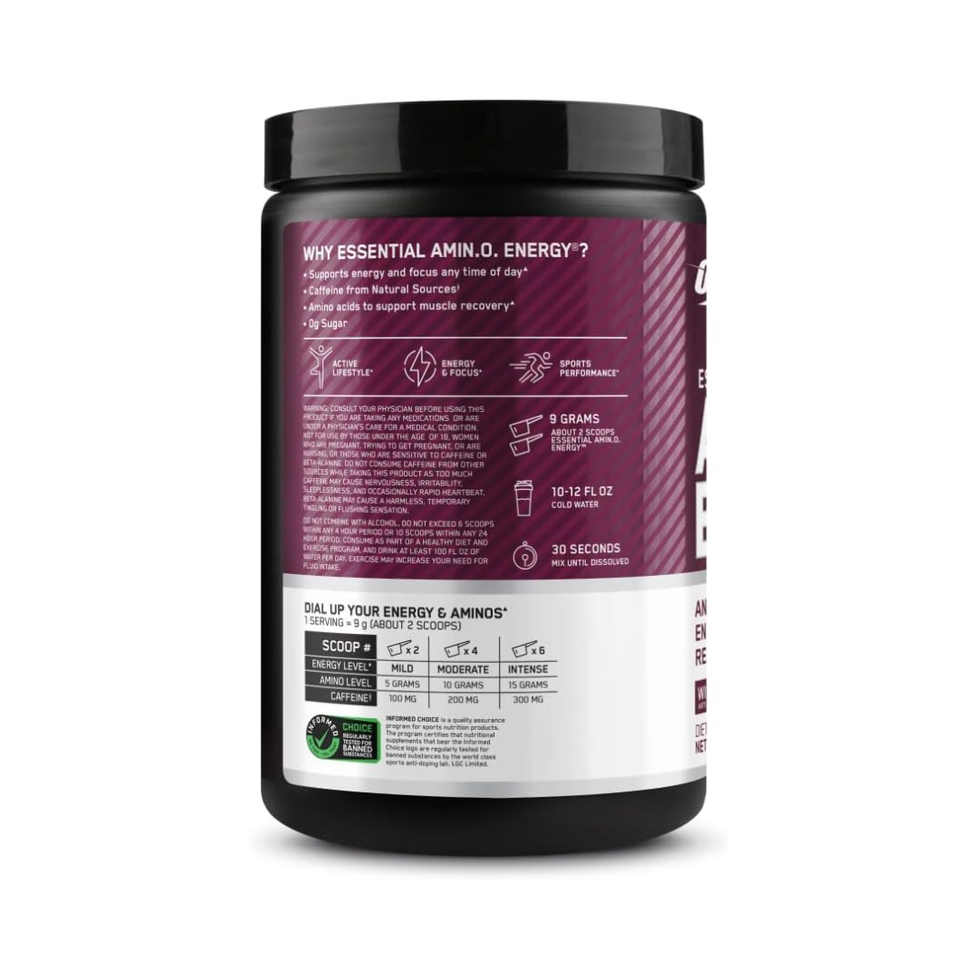 ON Amino” product. The results focus on the following related products: Optimum Nutrition Amino Energy in Wild Berry flavor This is an amino acid supplement with caffeine from natural sources to provide energy and focus.