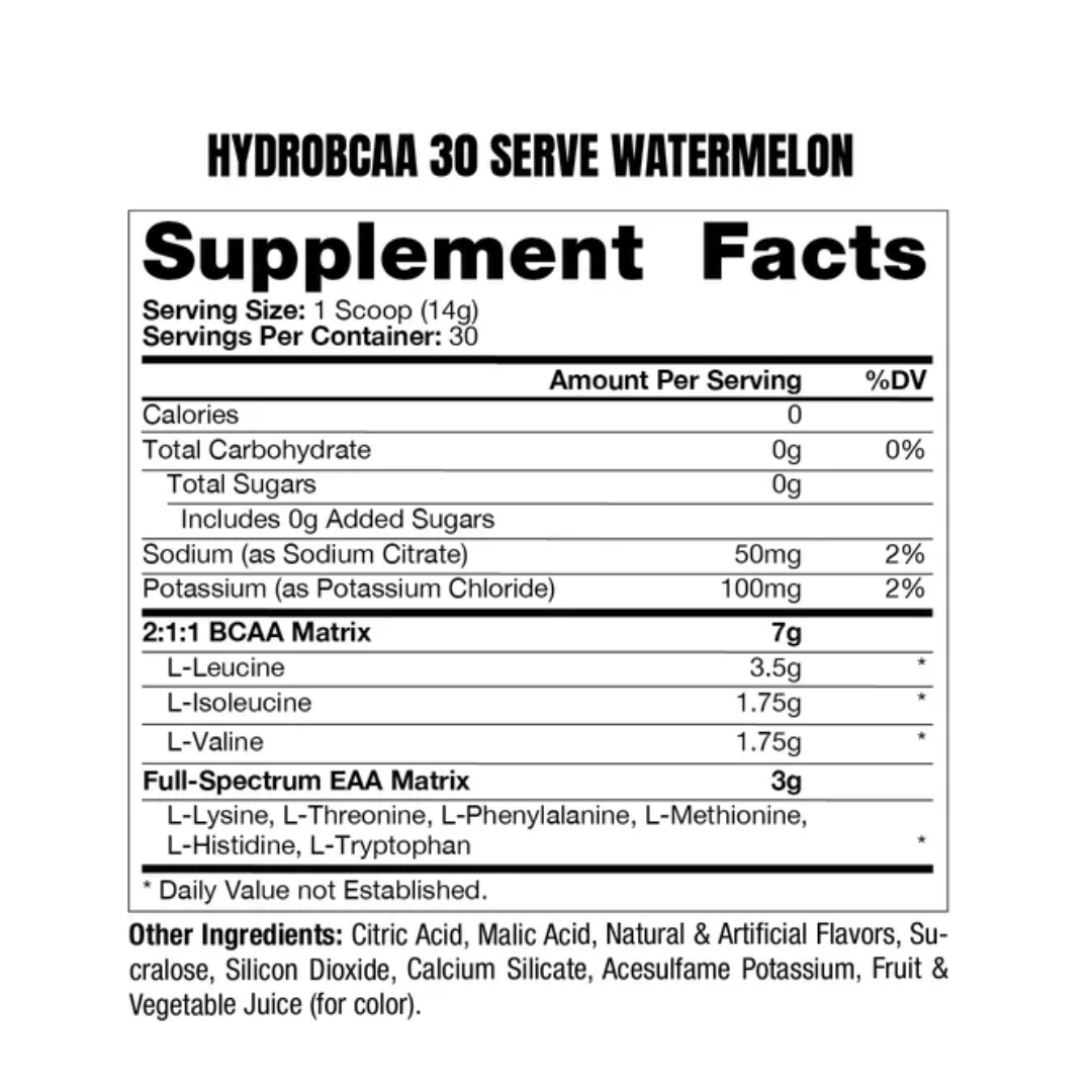 If you are looking to fuel up during intense training sessions to increase output and SUGAR performance, meet your new sidekick. HydroBCAA® is a vegan-friendly amino acid supplement that aids in intra-workout performance, post-workout recovery and all day hydration. HydroBCAA® features a Full Spectrum 10g EAA Matrix for optimized muscle repair and recovery.† SUGGESTED USE: Mix 1 scoop with 8-10oz of cold water. Can be consumed before, during, or after training for maximum muscle recovery and development.† WARNING: This product is intended for healthy adults, 18 years of age or older. Do not use if you’re pregnant or nursing. If you experience any adverse reaction, discontinue use. Do not use if safety seal is broken or missing. KEEP OUT OF THE REACH OF CHILDREN. Store in a cool, dry place. Content sold by weight not volume, some settling may occur. Protect from heat, light and moisture. WARNING FOR CALIFORNIA RESIDENTS: Consuming this product can expose you to lead which is known to the State of California to cause cancer and birth defect or other reproductive harm. For more information go to: www.P65Warnings.ca.gov.