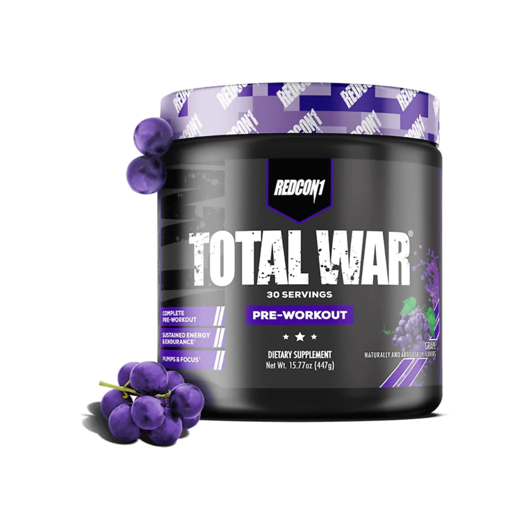 Redcon1 Total War is a powerful pre-workout supplement that provides a combination of energy, focus, and pump factors to help you train with maximum intensity. It contains 320mg of caffeine, 3.2g of beta-alanine, and other ingredients like citrulline malate, agmatine sulfate, and taurine