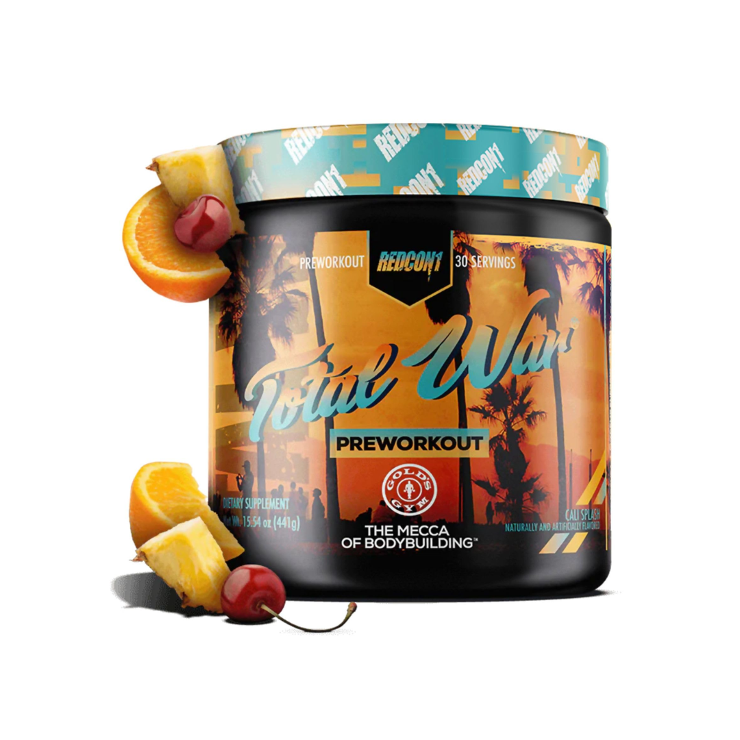 Redcon1 Total War is a pre-workout supplement that provides a powerful combination of endurance, pump, energy, and focus factors. The Cali Splash flavor contains 320mg of caffeine per serving, as well as beta-alanine, green tea, and juniper to help boost your workout performance. It is recommended to mix one scoop with 4-6 oz of water and consume 30 minutes prior to training. Redcon1 Total War is a popular pre-workout supplement that can help give you the unstoppable power to dominate your workouts.